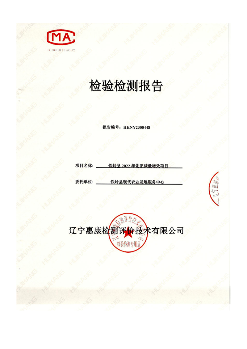 鐵嶺化肥減量檢測(cè)報(bào)告